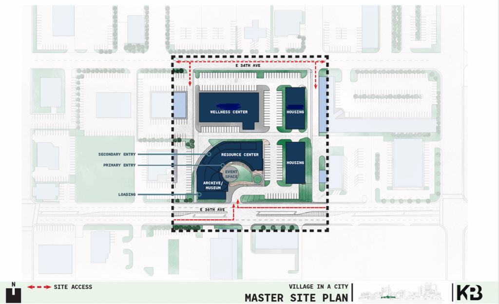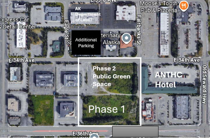 Village in the City will be located on four acres in midtown Anchorage, directly east of 561 E. 36th Avenue, a major transportation corridor accessible by foot, bike, bus, and vehicle, and near Alaska’s largest tribal health system. The site can accommodate additional structures as needs grow.